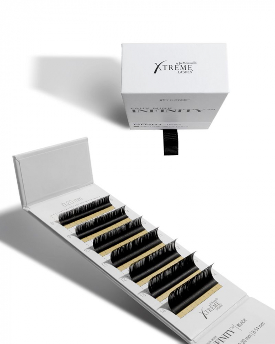 Pilonul noii generații a genelor Xtreme, Faux Mink Infinity™ Lashes, reprezintă o noutate revoluționară pe piața industriei frumuseții. Cu fibră despicată, ușoară, special concepută pentru un efect mai plin, dar totodată natural. Faux Mink Infinity™ este o tehnică nou-nouță care nu a mai fost folosită până acum.